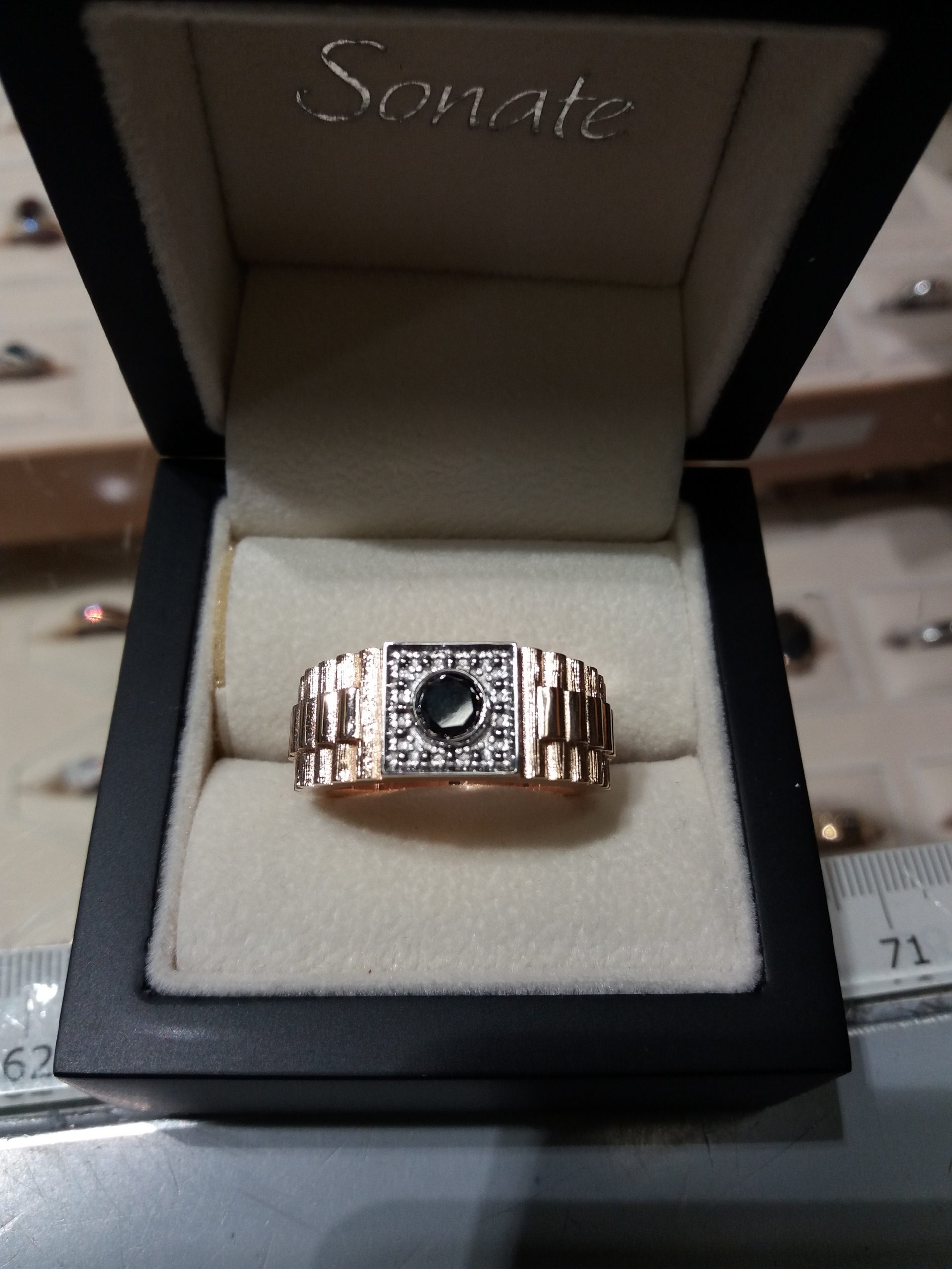 Keltakultainen Kantasormus Mustalla timantilla 2