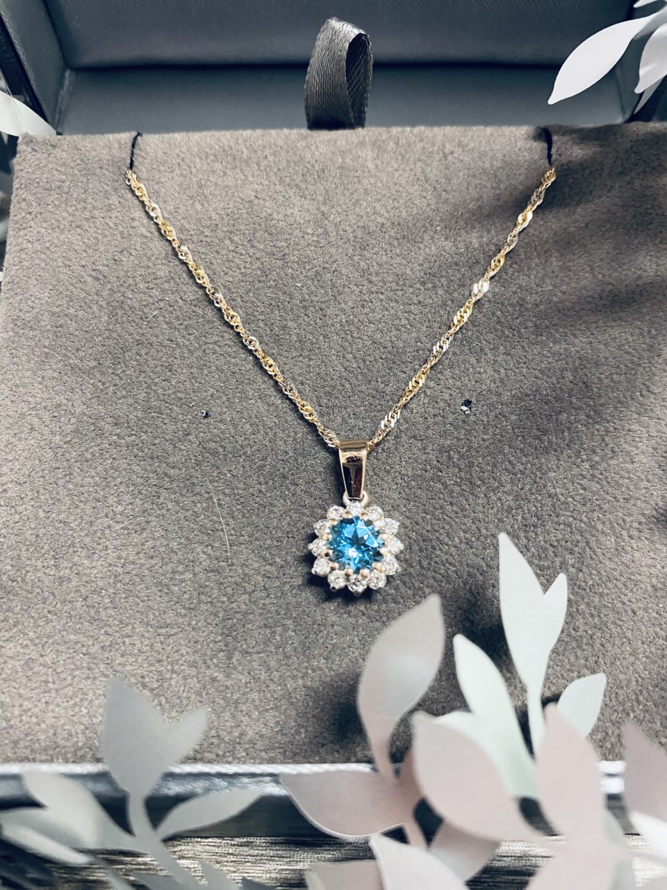 Topaasiriipus Keltakultaa ja timantteja. Kaksivärinen ketju